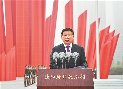 娄勤俭代表省委、省政府向领导和指挥渡江战役的老一辈革命家表达无限怀念,向光荣牺牲的革命先烈表示深切缅怀,向所有参战的老战士、老同志和支前群众致以崇高敬意。他指出,70年前的今天,人民解放军以摧枯拉朽之势,一举突破长江天堑,百万雄师过大江,胜利解放南京。渡江战役胜利和南京解放,宣告了一个旧时代的终结,标志着中国人民迎来了民族独立、人民解放的光明前景。风雨兼程七十载,砥砺奋进谱华章。可以告慰革命前辈的是,今日之中国,比历史上任何时期都更接近中华民族伟大复兴的目标;今日之江苏,正在以习近平同志为核心的党中央坚强领导下,向着“强富美高”新江苏的宏伟目标阔步前行。