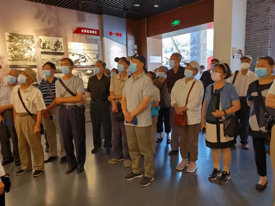 在茅山新四军纪念馆,老同志们认真听取讲解员的讲解,仔细观看各种照片、绘画和枪支、实物等珍贵历史文物资料,追忆了那段烽火连天的峥嵘岁月,深情缅怀了中国共产党领导人民军队进行英勇抗战的丰功伟绩。