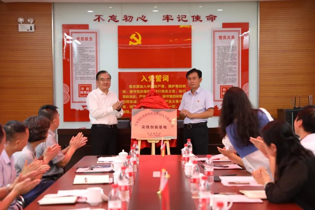 会上,瞿超与钱阳共同为“月牙湖街道新的社会阶层代表人士实践创新基地”揭牌。