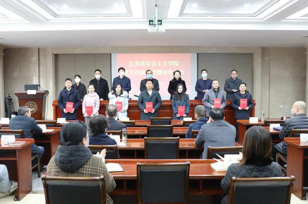 2月23日上午,省社会主义学院召开全院机关作风建设暨表彰大会。省委统战部副部长、院党组书记瞿超出席会议并讲话,副院长魏晓蕾宣读表彰决定,院领导陈锋、朱杰、陈童出席会议,副院长、院机关党委书记钱照亮主持会议,省委省级机关工委党员教育培训办公室主任陈维勇出席会议。