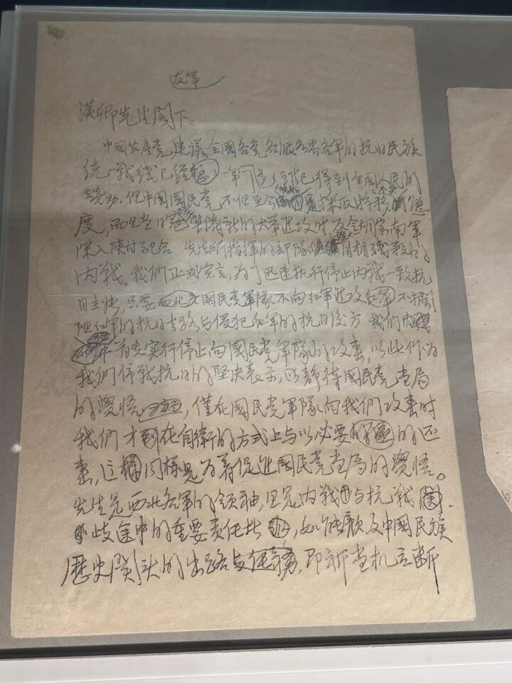在中国人民抗日战争纪念馆举行的《为了民族解放与世界和平——纪念中国人民抗日战争暨世界反法西斯战争胜利80周年》主题展览上,陈列着一份信件,内容以“汉卿先生阁下”开篇,全文三百余字,却见证着一个决定民族命运的关键时刻。