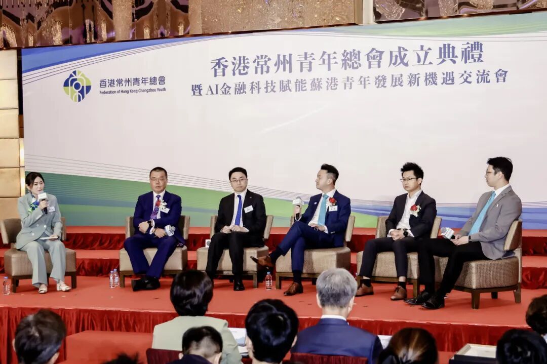 当天还举办了AI金融科技赋能苏港青年发展新机遇交流会。洪为民、赵朗、香港理工大学内地发展总监陆海天、朗思科技有限公司首席执行官许可、香港青年科学家协会执行会长高博等5位嘉宾,围绕苏港产业协同、科技创新与青年发展路径展开深入对话,为两地青年合作探索新方向。