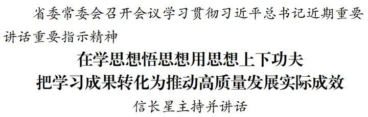 9月22日,省委常委会召开会议,认真学习习近平总书记近期重要讲话重要指示精神,研究贯彻落实举措。省委书记信长星主持会议并讲话。