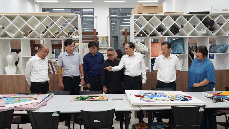在校期间,袁建华一行参观了“农工之家”的活动阵地——“家纺工作室”和“版画工作室”,以及南通大学张謇爱国同心教育实践基地——校史馆。