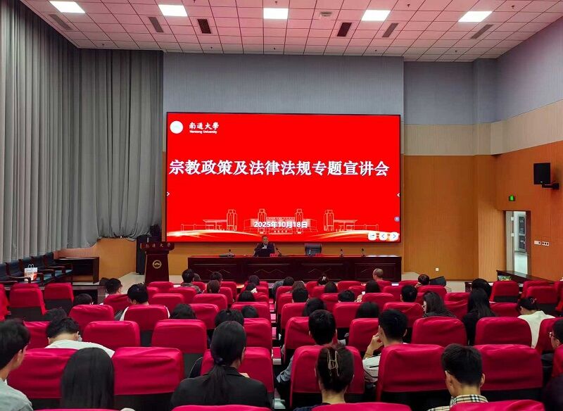 10月18日,南通大学举办宗教政策及法律法规专题宣讲会。南通市民族宗教事务局政策法规处处长徐生旺应邀来校作专题宣讲。2025年全体新进专任教师、辅导员参加此次宣讲会。