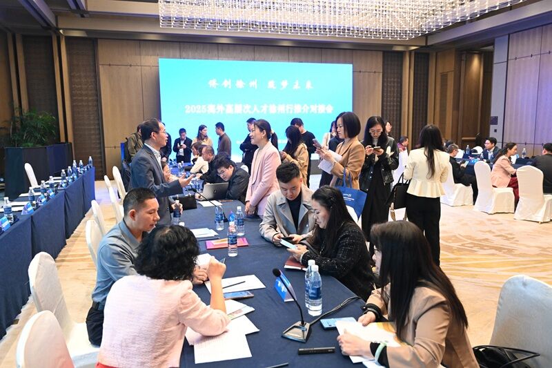 徐州项目对接会的现场,徐州人用特有的热情迎接博士团——每位成员都被前来对接的园区、企业和高校包围,洽谈、对接、联络……这样热火朝天的忙碌,一直延续到中午用餐。徐州市委常委、统战部部长孙文华说:“我们前期做好功课,加强与博士团每位成员的沟通联系,确保每个项目有4家以上的意向企业单位对接,目的就是更好推动项目在徐落地”。