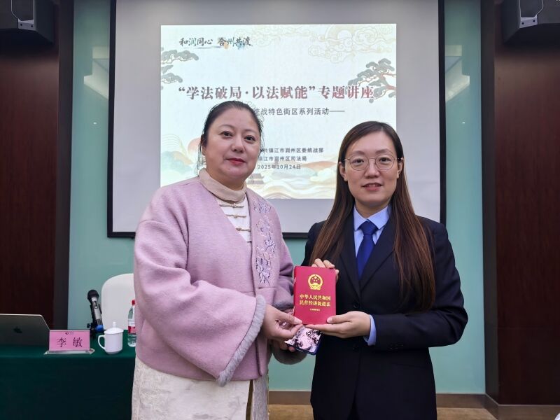 10月24日下午,润州区委统战部联合区司法局、区侨联共同举办“和润同心·合州共渡”西津渡统战特色街区系列活动第二场——“学法破局·以法赋能”专题讲座。此次活动旨在提升服务保障民营经济健康发展的能力水平,持续优化润州法治化营商环境,对民营经济促进法进行全面深入的阐述和解析,为民营经济人士明晰政策导向,护航民营企业高质量发展。