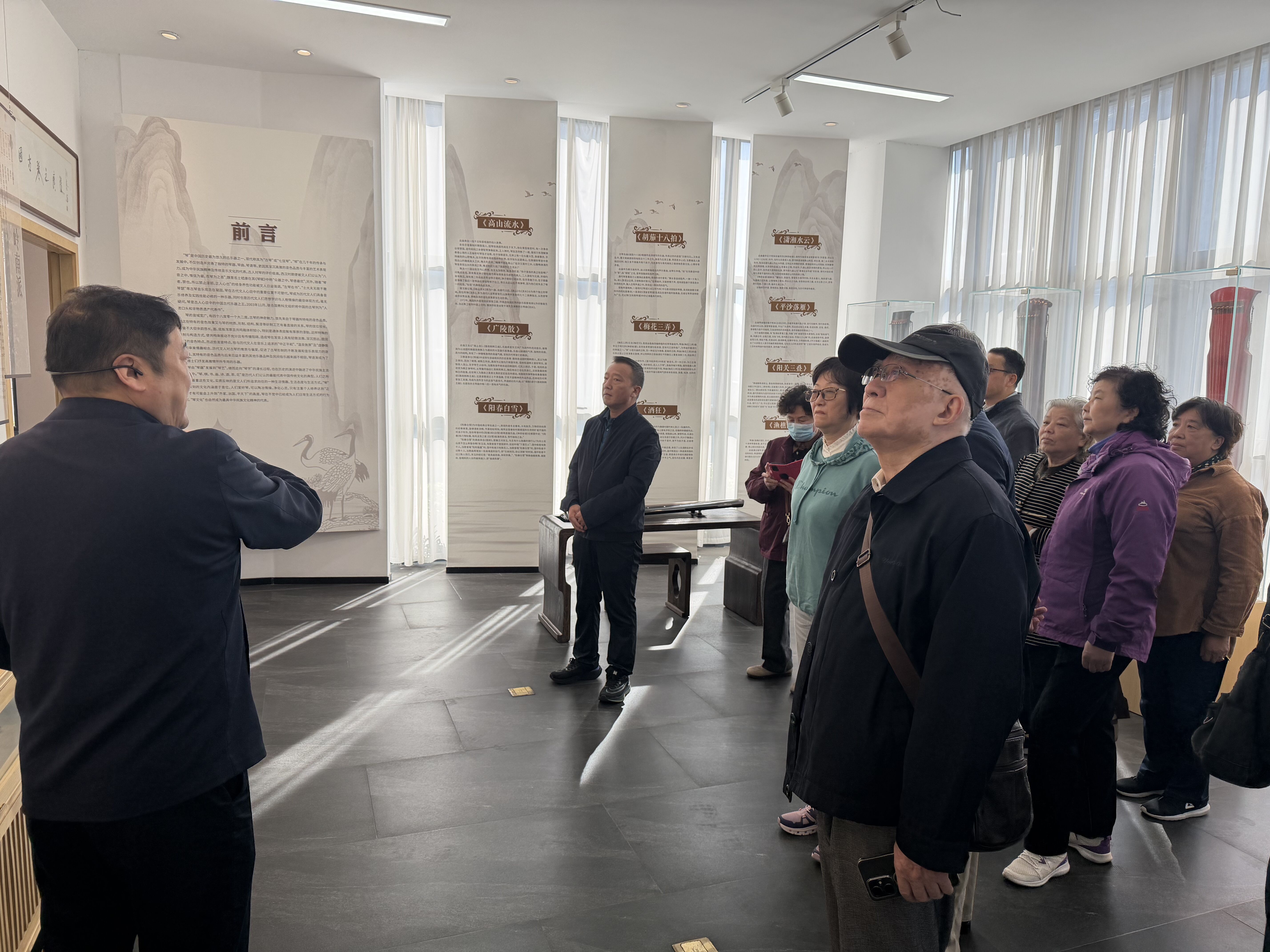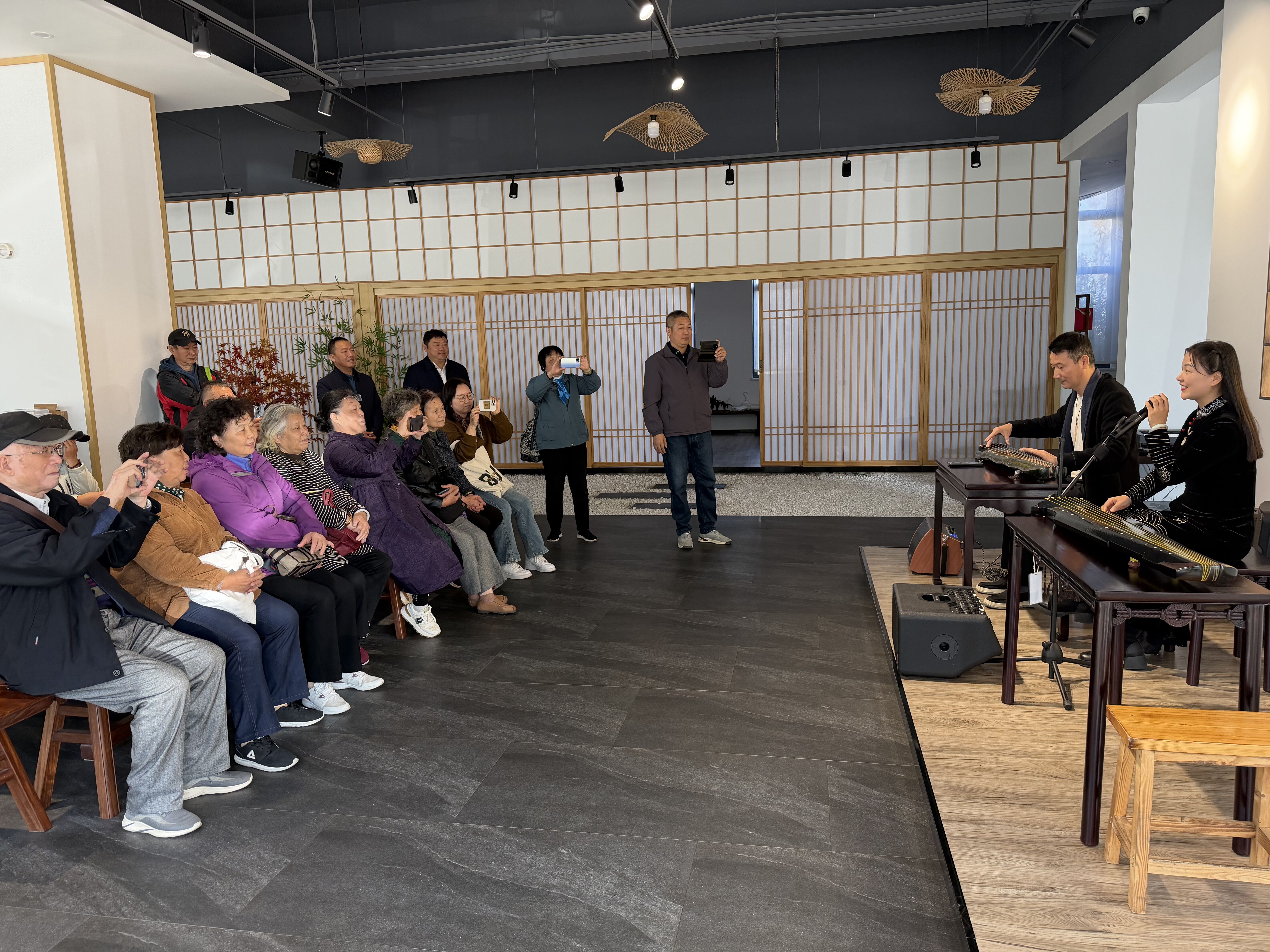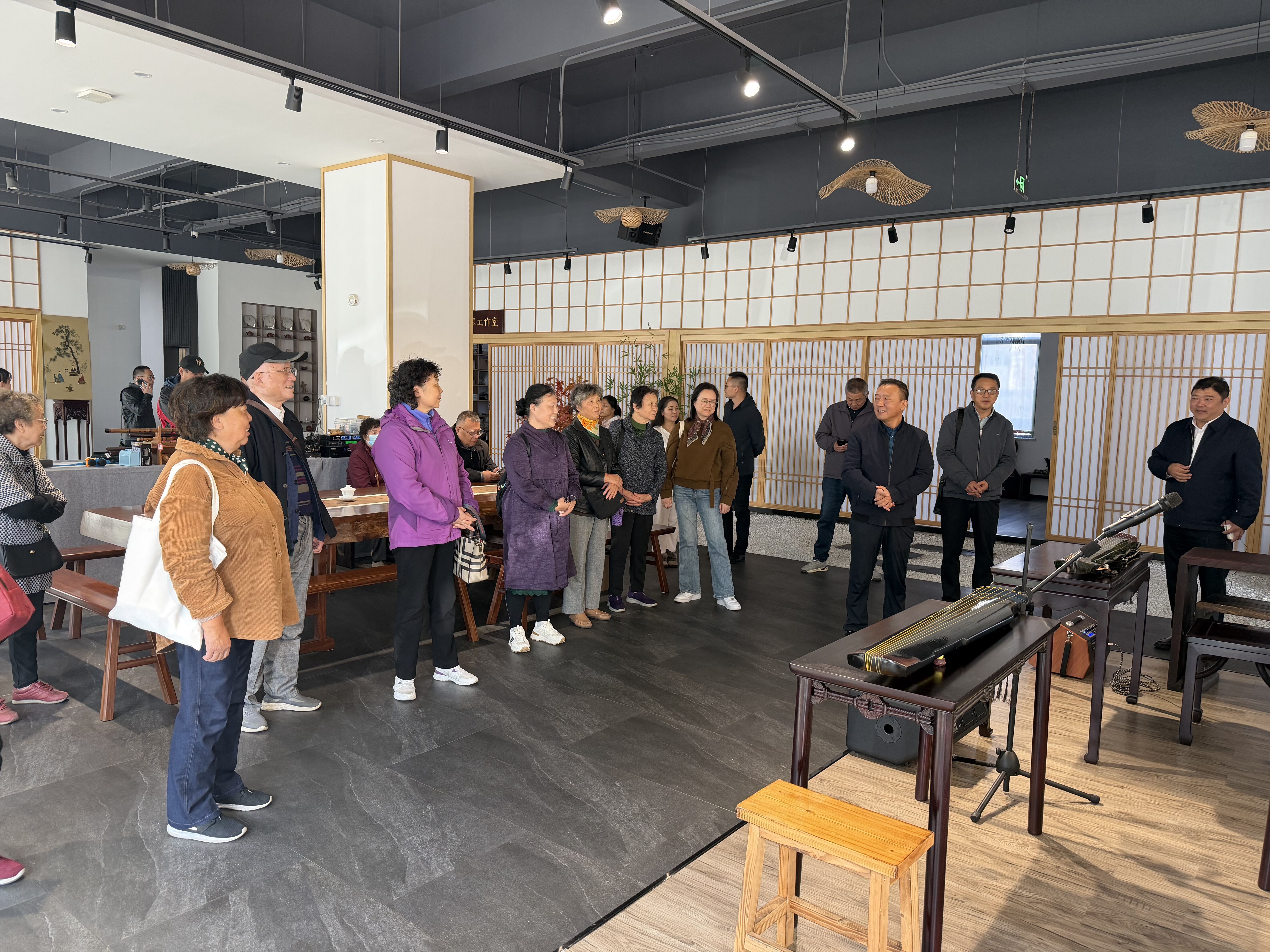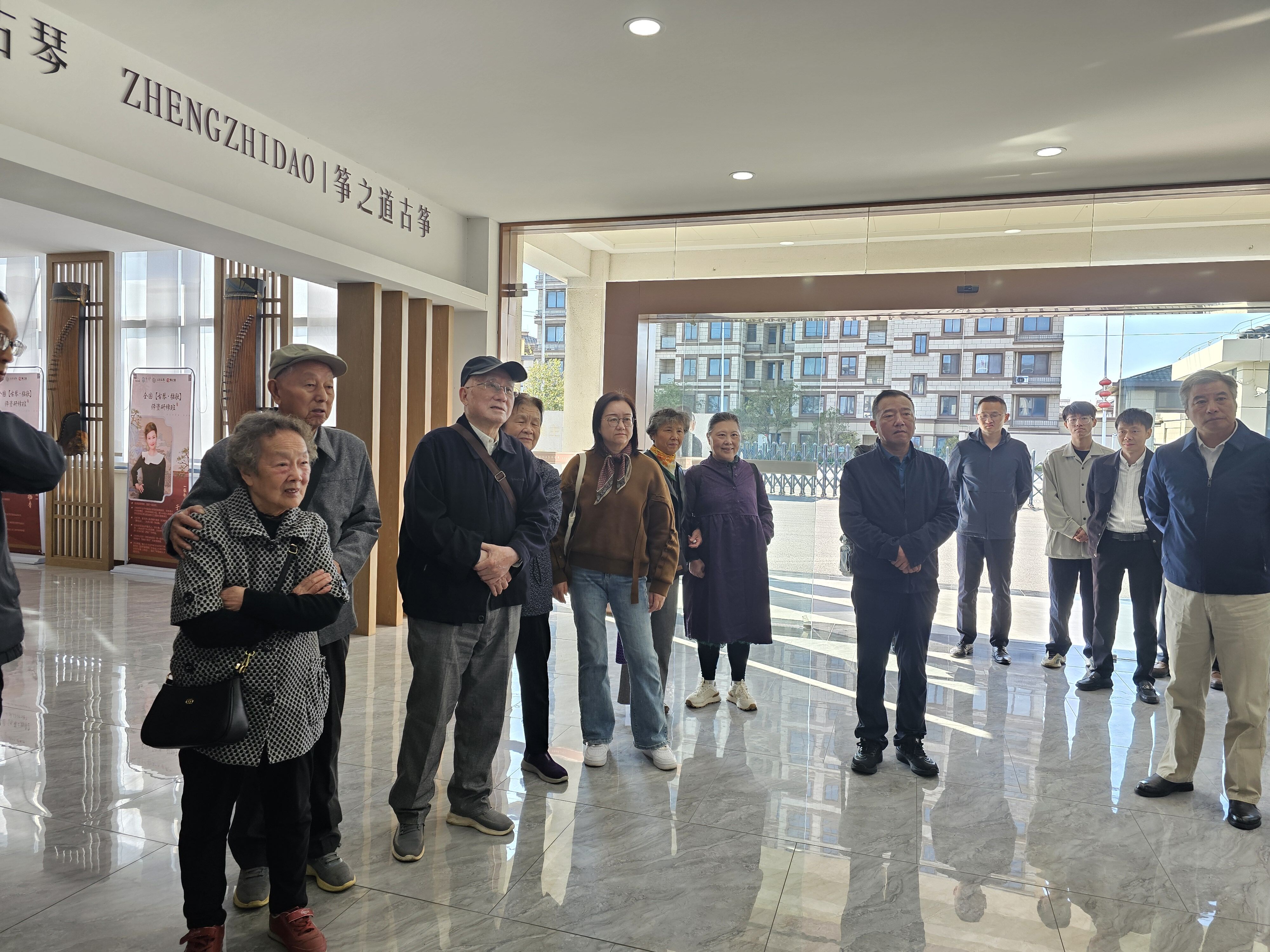活动首站设在仪征天韵琴筝。在这里,侨胞们开启了一场沉浸式的非遗文化体验。大家走进制作工坊,近距离观摩琴筝制作的精湛工艺,从面板选材到细节上漆,感受匠心传承。在“触摸体验区”,不同材质的琴筝部件让大家直观感受到了传统乐器的魅力。随后,悠扬的琴声响起,《重阳抒怀》等经典曲目余音绕梁,勾起了无数乡情记忆。活动现场还特别安排了互动环节,多位老年侨胞在传承人的鼓励和指导下,亲手拨动琴弦,尝试弹奏出简单而美妙的音符,脸上洋溢着喜悦与自豪。