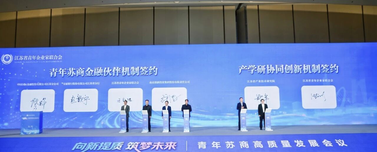 会议分别围绕民营企业“走出去”、打破“内卷式”竞争、拥抱未来产业等3个主题进行深入探讨,引起青年企业家强烈共鸣。会议现场,省青企联发布“青年苏商高质量发展优秀案例”,向专家学者颁发“青年苏商领航导师”聘书;与10个海外商会组织共建“青年苏商海外创投驿站”;与多家金融机构签订“青年苏商金融伙伴”合作协议;与省产业技术研究院建立产学研协同创新合作机制。