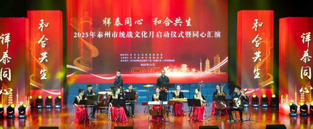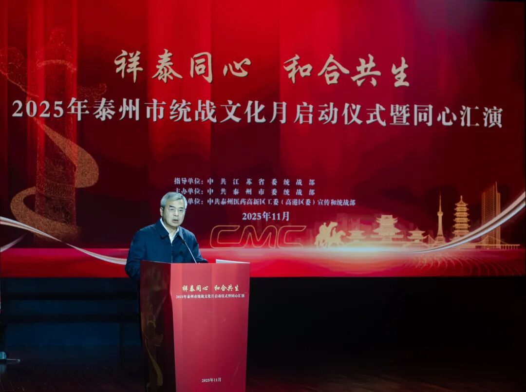 因“统战”相聚,为“同心”而来,为深入学习贯彻党的二十届四中全会精神,用好统战历史文化资源,传承统战优良传统,今天下午,“祥泰同心 和合共生”2025年泰州市统战文化月启动仪式暨同心汇演活动在医药高新区(高港区)举办。省委统战部副部长徐东海,市委常委、统战部部长徐克俭,医药高新区党工委副书记、管委会主任,高港区委副书记、区长丁志强,市委统战部常务副部长、二级巡视员孙琦,省委统战部宣传处处长王宜峰,医药高新区党工委委员、高港区委常委、宣传和统战部部长张洁等出席活动。