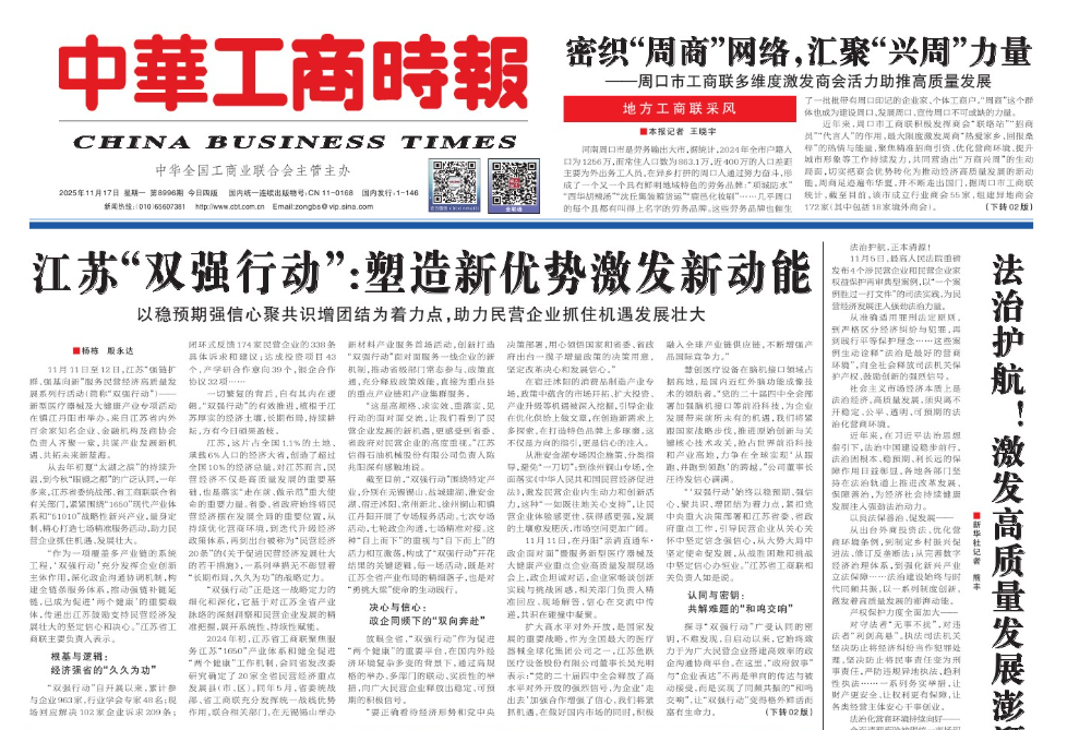 从太湖之滨到长江之畔,“双强行动”如同灵动画笔,在江苏产业版图上勾勒出清晰的升级轨迹:根植于经济强省的深厚底蕴,承载着营造一流环境的坚定决心,依托于政企同频共振的高效平台,收获了有形与无形的丰硕成果,并通过有效的传播凝聚起广泛的发展共识。这条轨迹,是江苏民营经济迈向高质量发展的重要路径,也是坚持有效市场和有为政府相结合的生动实践。