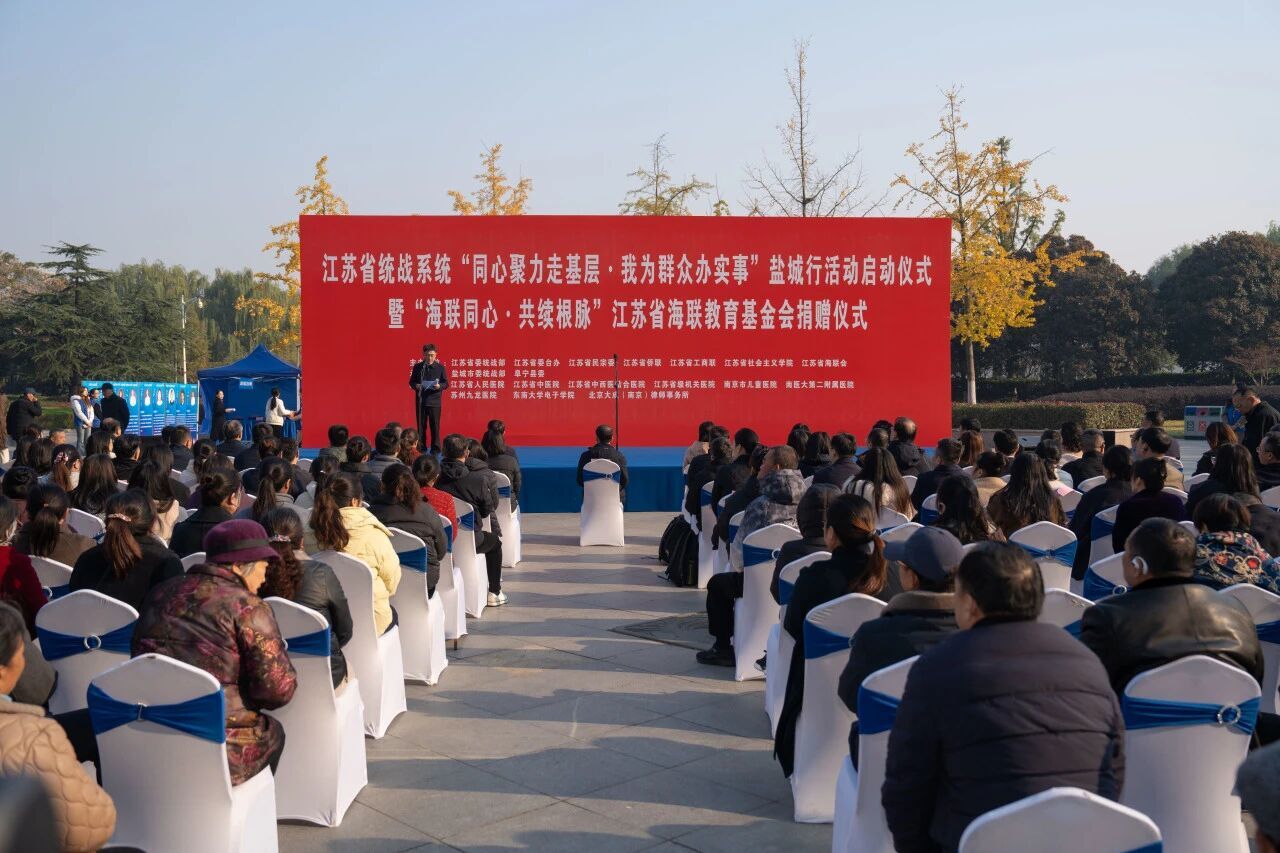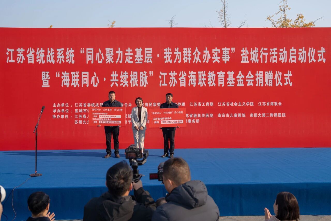 省海联会和省海联教育基金会开展“海联同心·共续根脉”爱心捐赠,向阜宁县陈集中学捐赠价值5万元的图书和价值7万元的文体用品,向阜城街道孙桥社区捐赠价值5万元的图书,支持基层教育事业发展。