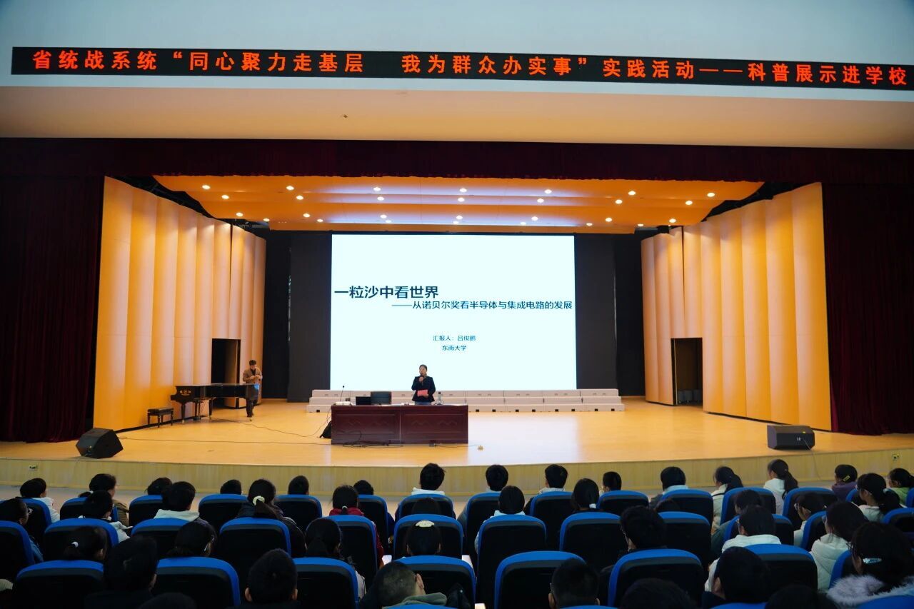 本次活动不仅延续了过去几年为群众办实事的好做法,让当地群众在家门口就能享受到暖心贴心的便民服务,还首次邀请东南大学电子学院副院长吕俊鹏为阜宁县实验初中近千名学生开设题为“一粒沙中看世界——从诺贝尔奖看半导体与集成电路的发展”主题讲座,并为大家现场演示多个趣味科普实验,受到广大师生的欢迎和好评。参与本次活动的党员干部和统战成员也表示,“同心聚力走基层·我为群众办实事”实践活动是凝聚各方合力、竭诚为民服务的具体举措,将一如既往用心用情办实事、倾心倾力解民忧,为提高人民群众幸福感作出更多贡献。