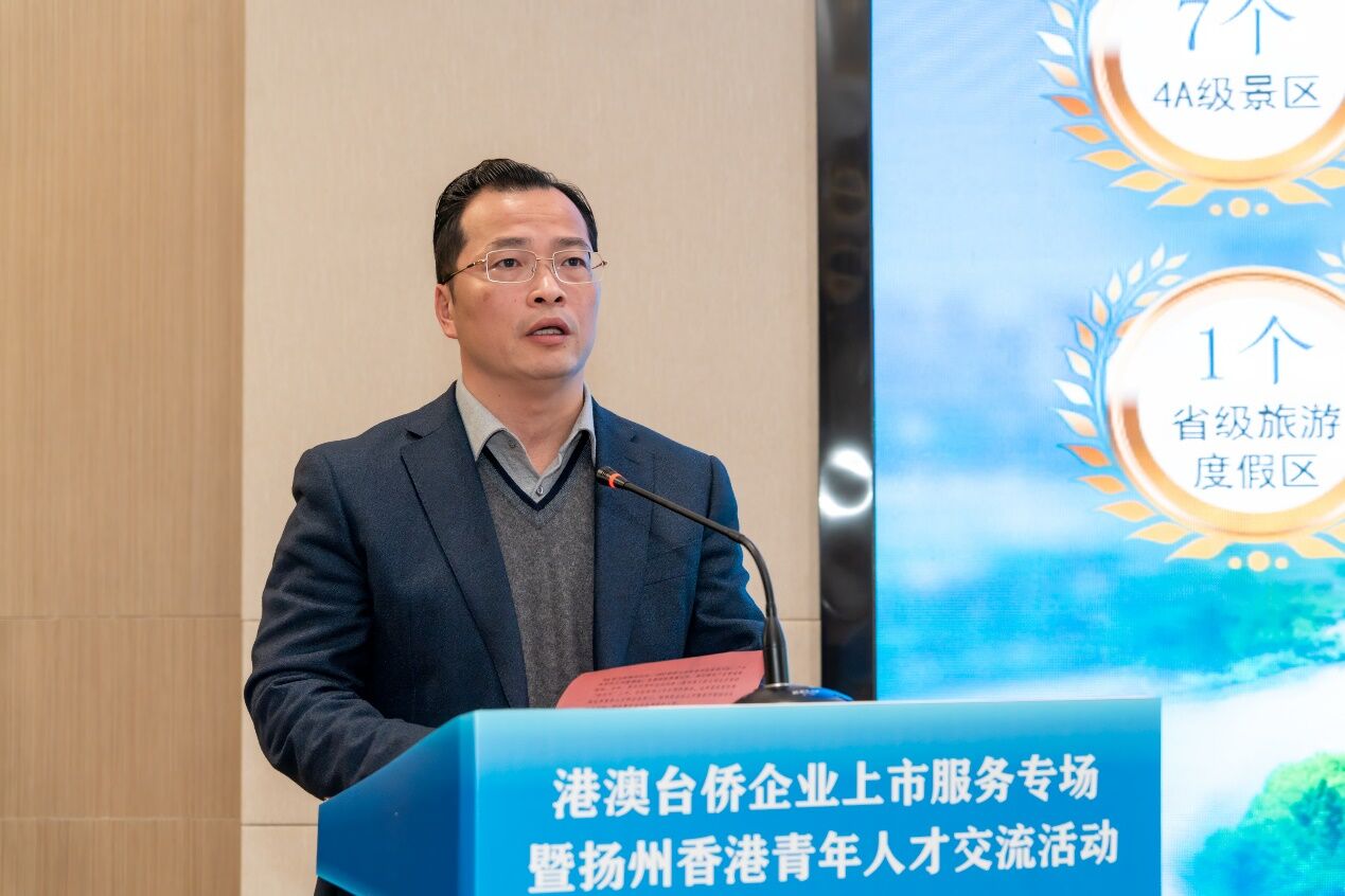 为充分发挥香港金融、科技、人才等资源优势,深化扬州香港两地交流与合作,积极搭建青年人才之间沟通交流平台,持续赋能青年企业家发展,推动实现合作共建、资源共享、优势互补,11月18日,“与企同行 向新出发”港澳台侨企业上市服务专场暨扬州香港青年人才交流活动在运河三湾举行。共青团江苏省委副书记张永意,扬州市委常委、统战部部长丁四海,共青团江苏省委统战部部长刘雯,共青团扬州市委书记赵文婕,扬州市蜀冈-瘦西湖风景名胜区党工委书记刘卫国,扬州市蜀冈-瘦西湖风景名胜区党工委副书记、一级调研员洪扬等出席活动。
