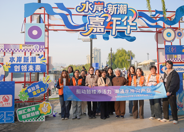 赛事之外,沿岸开展的“水岸新潮嘉年华”同样精彩纷呈。刘宁摄影的镜头记录、锐笔新境的钢笔画作、磐斋雨钺的书法互动、橘雁川的艺术插画、大成律所的法律咨询、昇晟堂的中医义诊、钟山应急救援的技能演示、新心汇公益义卖、诺德国际文化交流……新阶层人士以专业特长服务市民,以文创作品装点水岸,展现出他们在经济、文化、社会等领域的积极作为与责任担当。