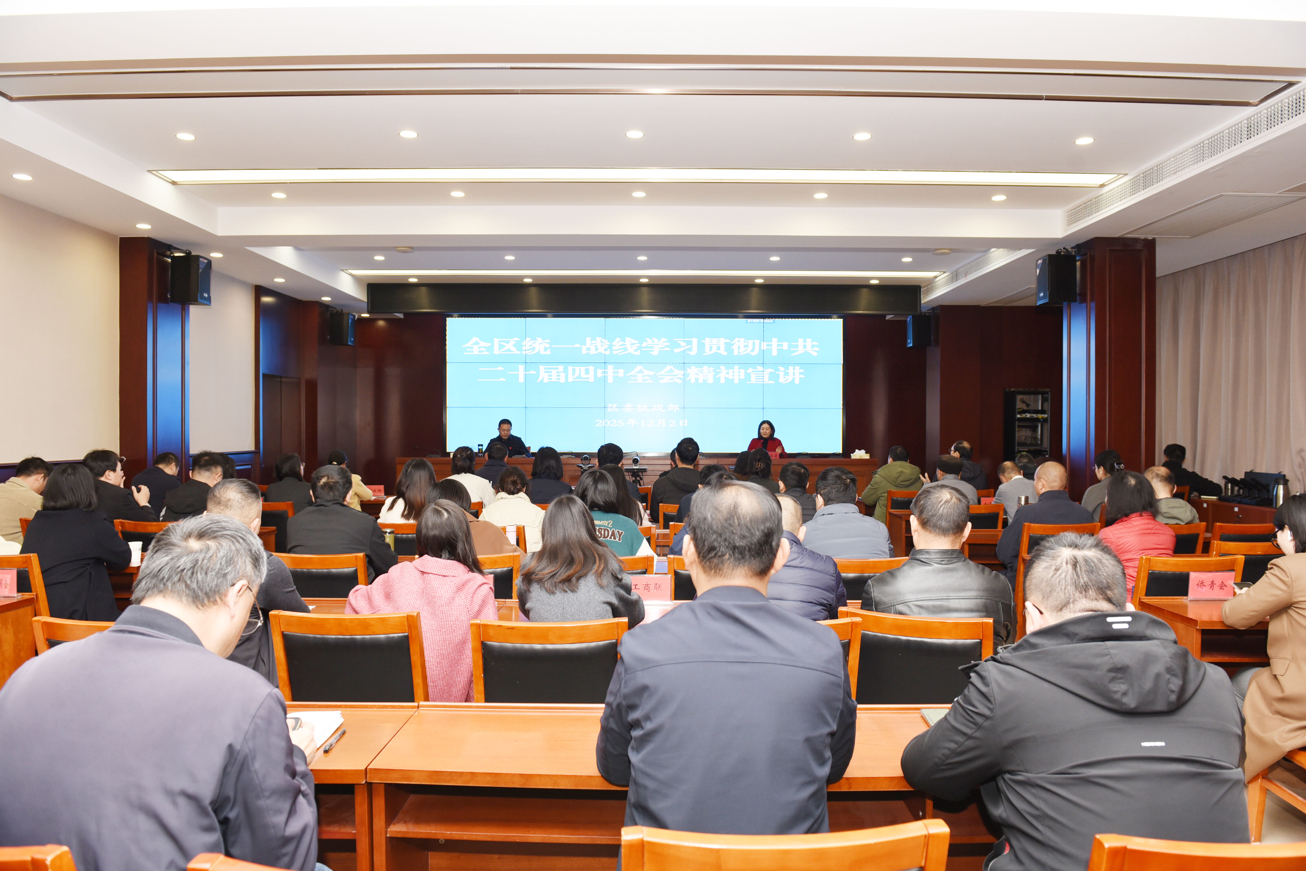 根据邗江区委统一部署,12月2日下午,邗江区组织统一战线学习贯彻中共二十届四中全会精神宣讲,邗江区委常委、统战部部长蔡卫荣作报告。