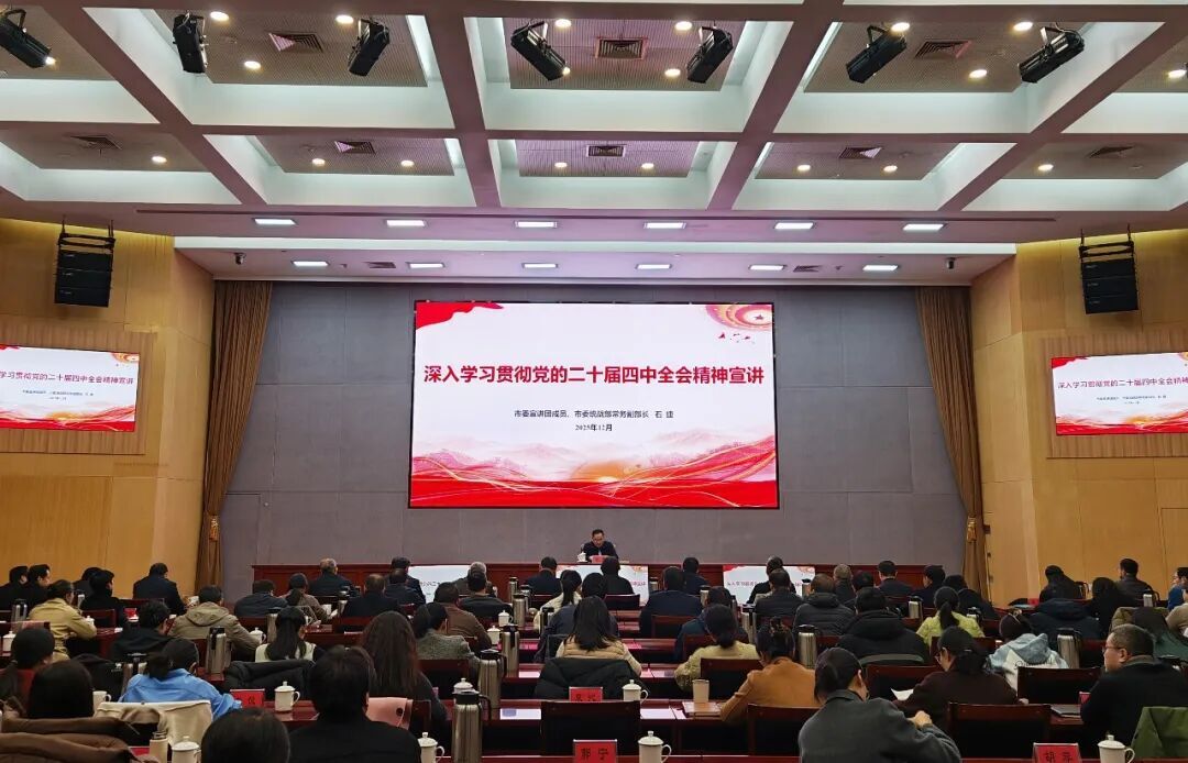 12月4日上午,学习贯彻党的二十届四中全会精神市委宣讲团市统战系统专场报告会举行。市委宣讲团成员、市委统战部常务副部长石捷作宣讲报告。