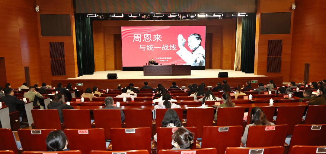 为深入学习贯彻习近平总书记关于做好新时代党的统一战线工作的重要思想,深化统一战线理论学习与实践创新,12月11日,经开区统战系统举办2025年第四期“同心大讲堂”专题培训。培训特邀市委统战部常务副部长、市社会主义学院院长施勇围绕周恩来与统一战线、落实统战工作责任制作专题辅导授课。淮安经开区统一战线工作领导小组成员单位分管负责同志,园区、街办统战工作分管领导,国企统战工作负责同志,各民主党派、无党派、知联会、新联会代表人士,商会代表等120余人参加培训。