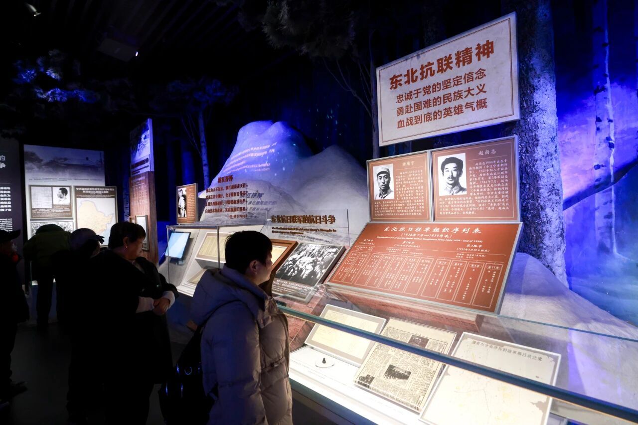 12月13日是南京大屠杀死难者国家公祭日,民众在位于北京的中国人民抗日战争纪念馆内参观。图为东北抗日联军的事迹吸引参观者。中新社记者 贾天勇 摄
