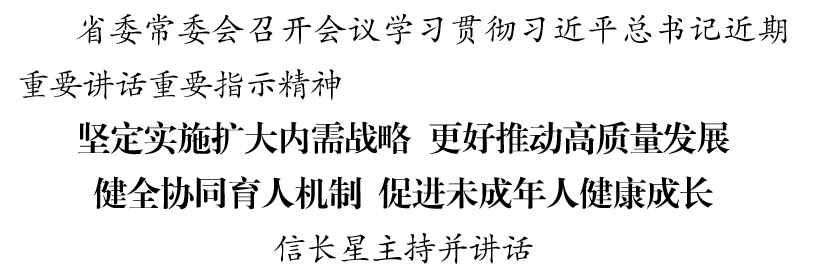 12月18日,省委常委会召开会议,认真学习习近平总书记近期重要讲话重要指示精神,研究贯彻落实举措。省委书记信长星主持会议并讲话。
