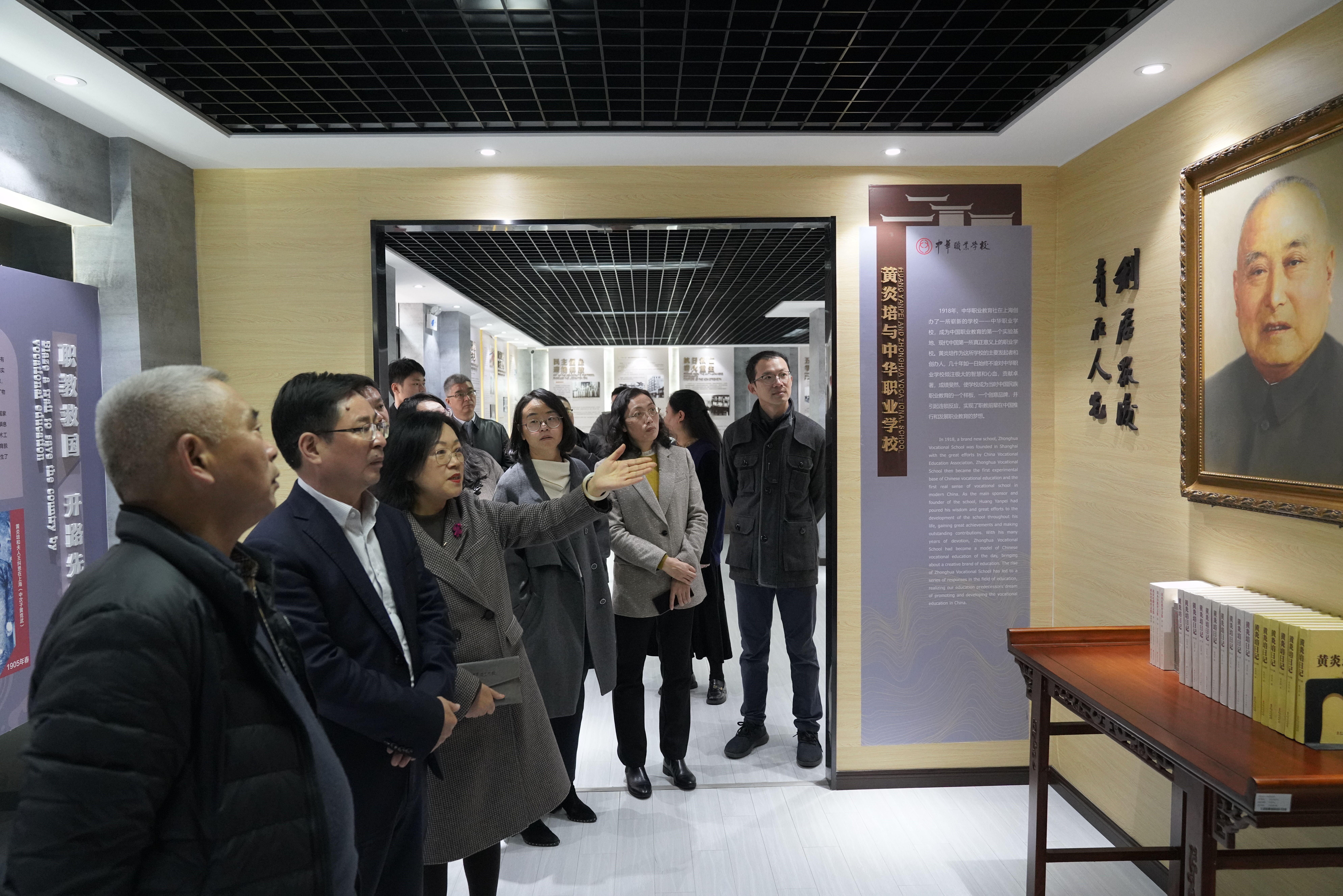 在中华职业学校,校党总支副书记、校长黄玉璟陪同调研组参观了校史馆,实地感受近代职业教育的历史积淀与发展脉络。上海中华职业学校前身为中华职业教育社1917年成立后次年设立的中国首所现代职业学校,现为国家级重点中等职业学校。