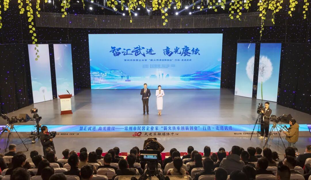 12月19日,“智汇武进 高光赓续——常州市民营企业家‘薪火传承创新创业’行动·走进武进”活动顺利举行。省工商联党组成员、副主席熊杰,市委常委、统战部部长杨芬,武进区委书记沈东为活动致辞。