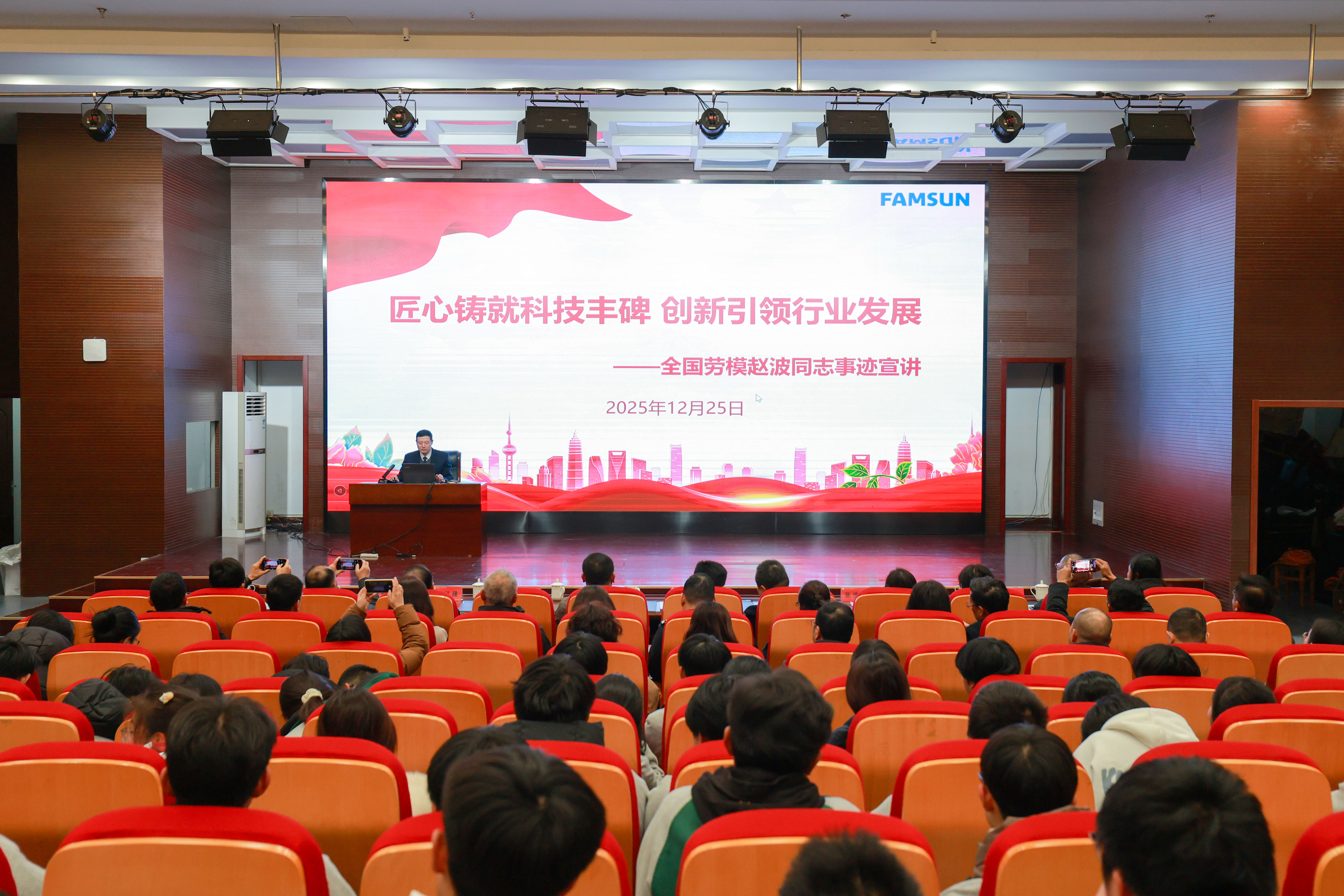 劳模宣讲环节,全国劳动模范赵波作精彩宣讲,分享自身成长历程和奋斗故事,让学生们近距离感受劳模风采,体悟工匠精神的时代内涵。