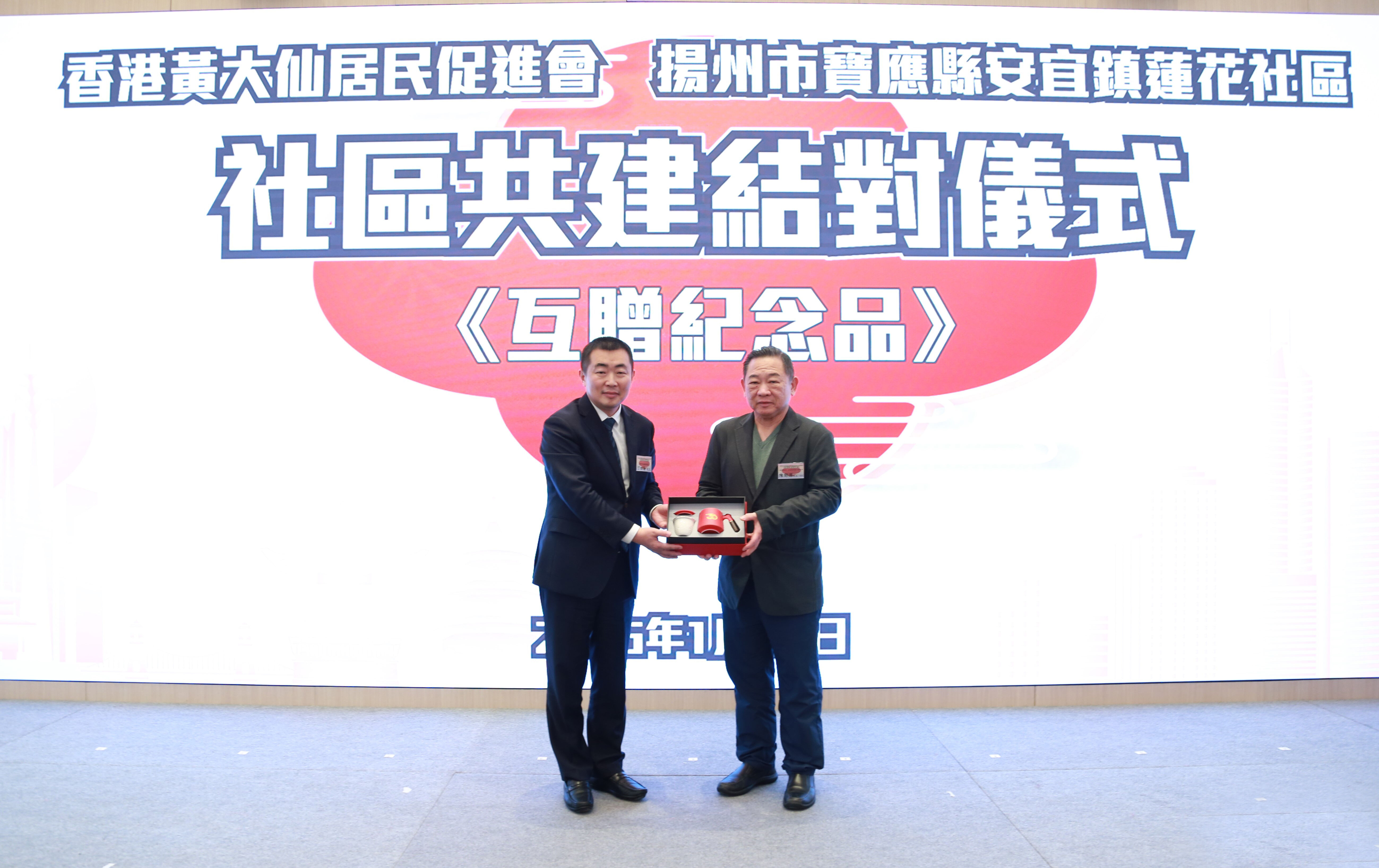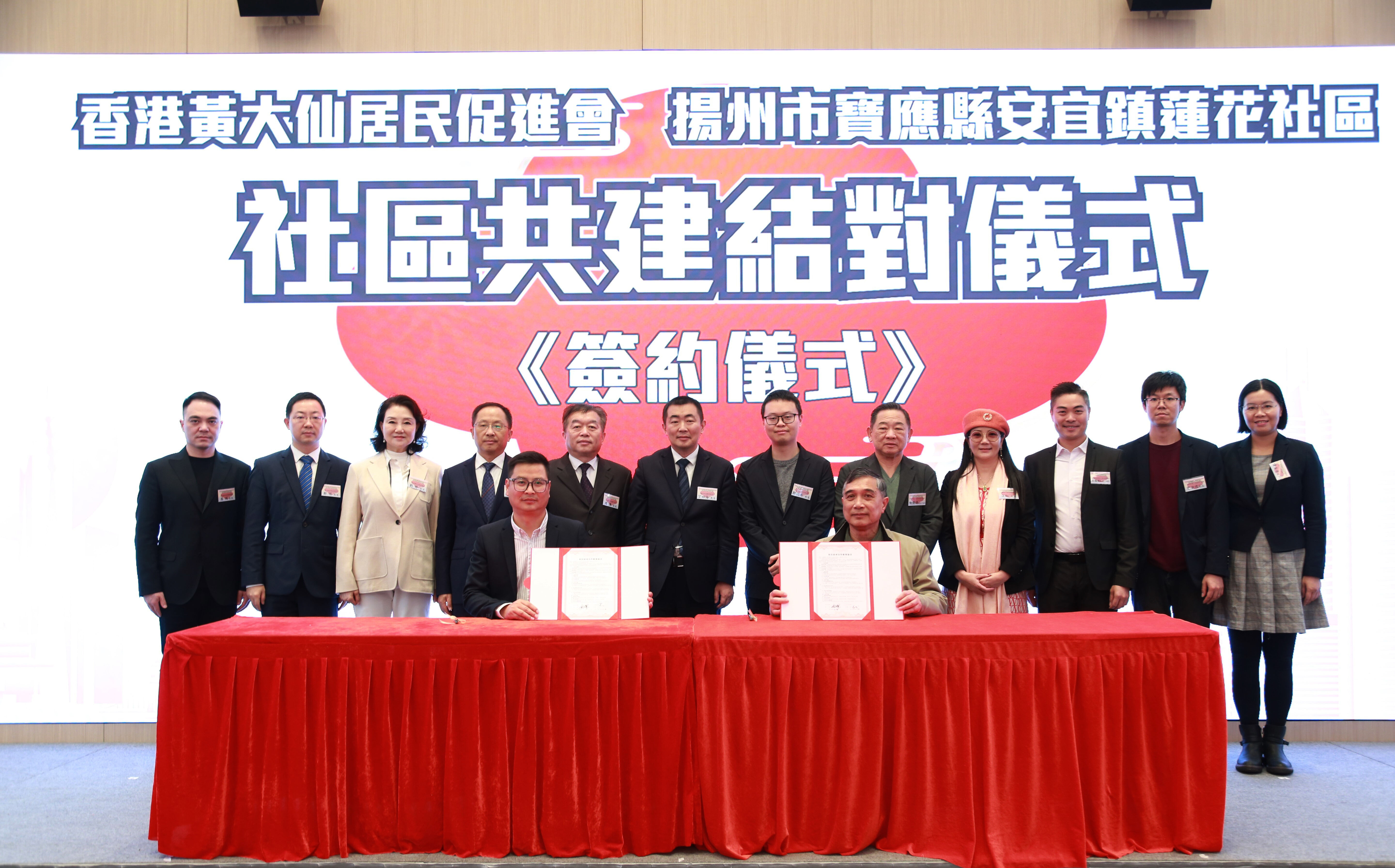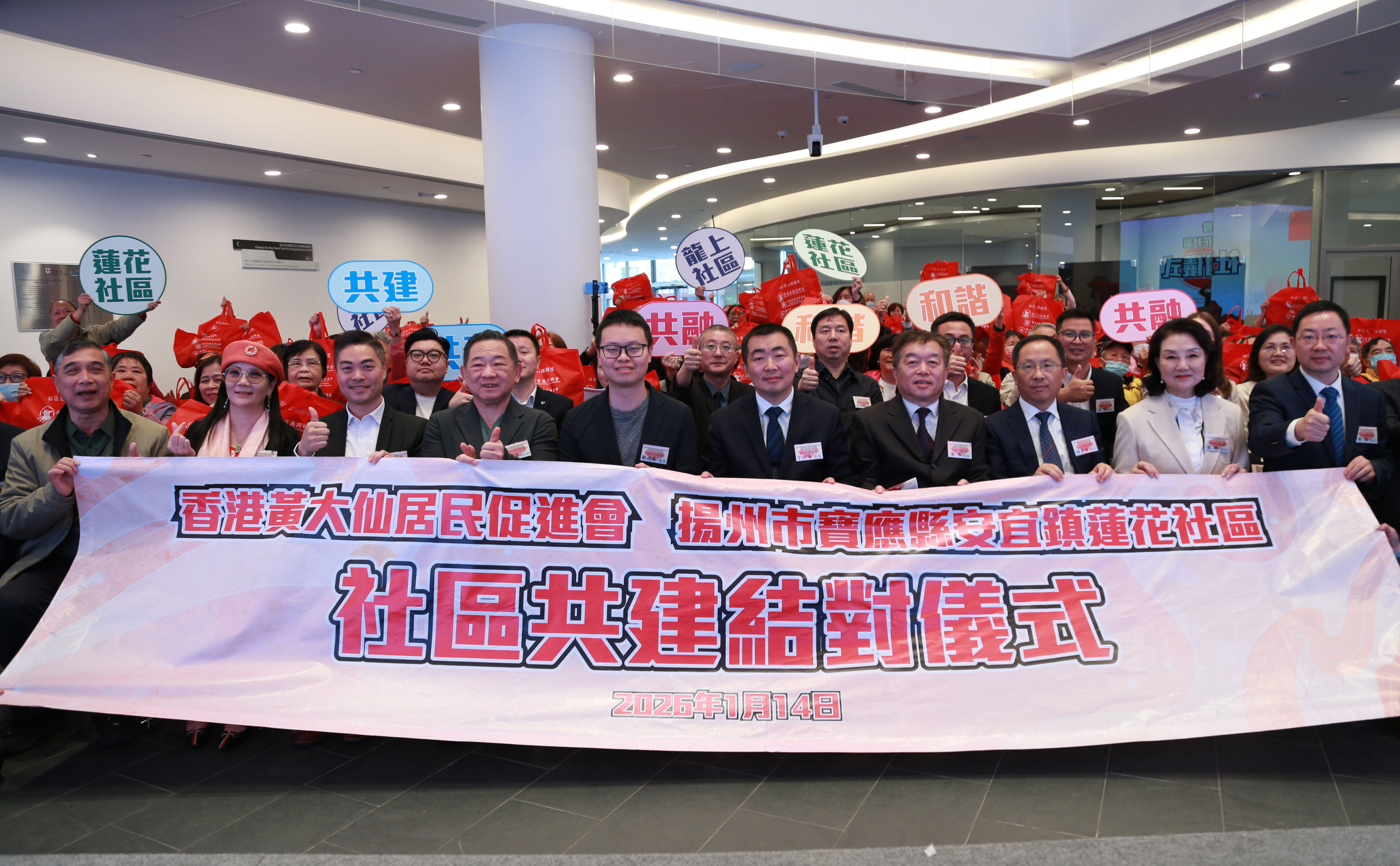 1月14日,扬州市宝应县安宜镇莲花社区与香港黄大仙居民促进会社区共建结对仪式在港隆重举办。扬州市委常委、统战部部长丁四海,香港中联办九龙工作部副处长郑成庚,扬州市侨联党组书记、主席周军,香港工联会副会长陈邓源,扬州市委统战部副部长杨秀华,宝应县委常委、统战部部长邹恺等出席活动,香港黄大仙区多位议员莅临启动仪式观礼,150余位居民参加活动。