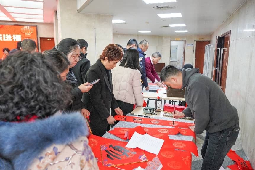 鼓楼区干部职工踊跃参与,或驻足观赏书法家创作,或根据自身喜好挑选春联,或排队等候定制专属祝福,现场洋溢着欢声笑语。大家手持墨迹未干的春联与福字,脸上洋溢着幸福的笑容,纷纷表示这样的活动既增添了浓浓的年味儿,又感受到了传统文化的独特魅力,更拉近了与新的社会阶层人士联谊会的距离,为繁忙的工作增添了温馨的节日氛围。