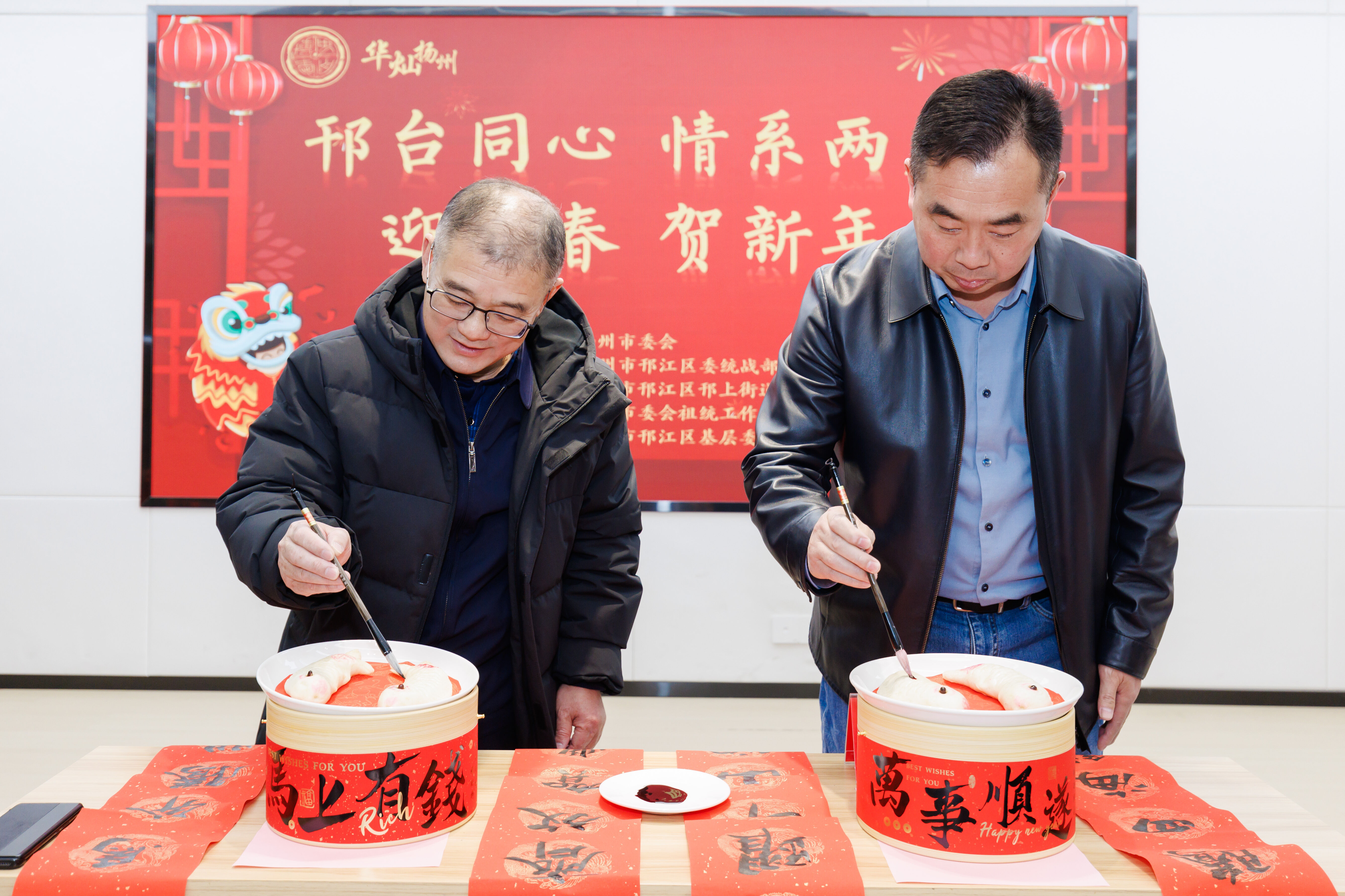 启动仪式上,领导嘉宾为翠岗花园社区赠送传统文化书籍,以书香润民心、文脉连两岸;为扬州特色年蒸龙鱼点睛,寄寓两岸同胞福寿安康、共赴新程的美好期许;红彤彤的春联送到台胞台属手中,笔墨间承载着血浓于水的亲情与新春祝福。