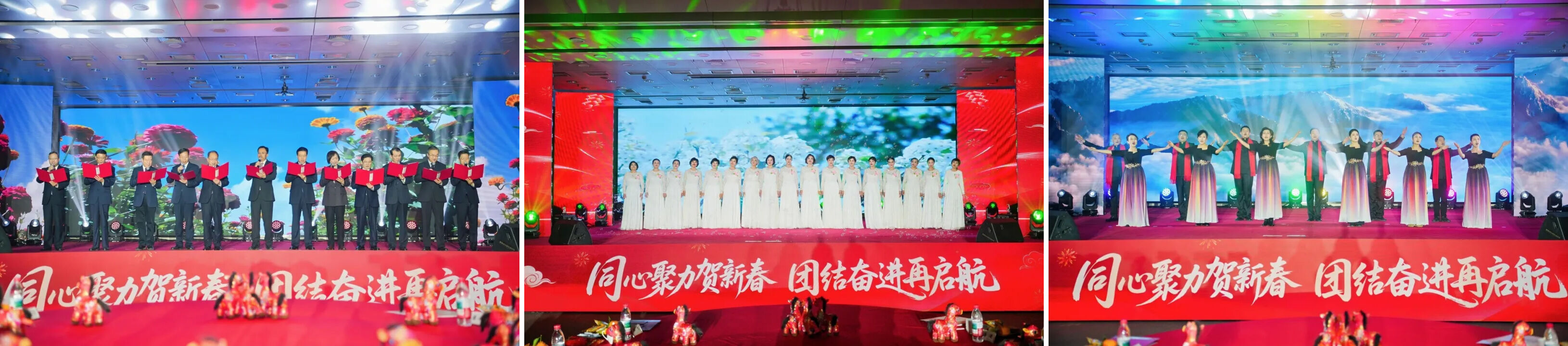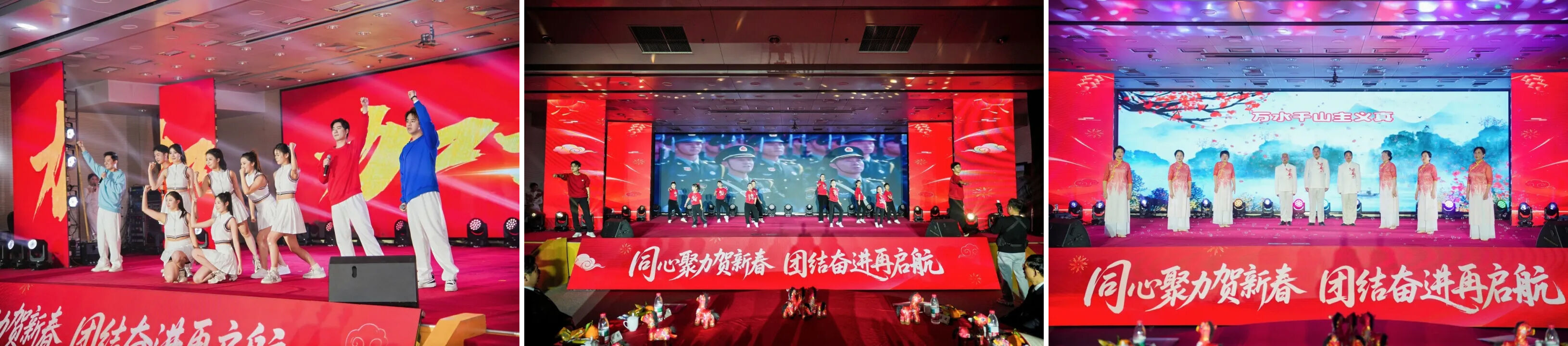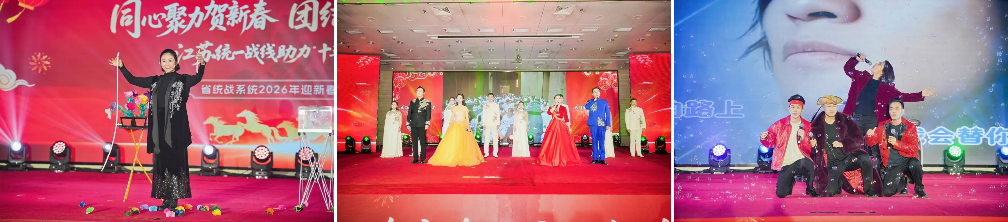团拜会上,大家互致问候、共贺新春。省委统战部领导班子成员、省统战系统和有关单位干部职工、统战成员表演了配乐诗朗诵《大写的中国》、民族鼓齐奏《万马奔腾 共赴新程》、歌舞《春天的芭蕾》《梨花又开放》《万众一心》《咏梅》《向往》《我的中国心》、二胡独奏与名家书法《新赛马》、昆歌表演《共产党和咱心连心》、情景表演唱《在社院看流星雨》、奇趣互动魔术和《同心舞》等自编自导自演的精彩节目,展现了新时代江苏统一战线团结奋进、昂扬向上的精神风貌。