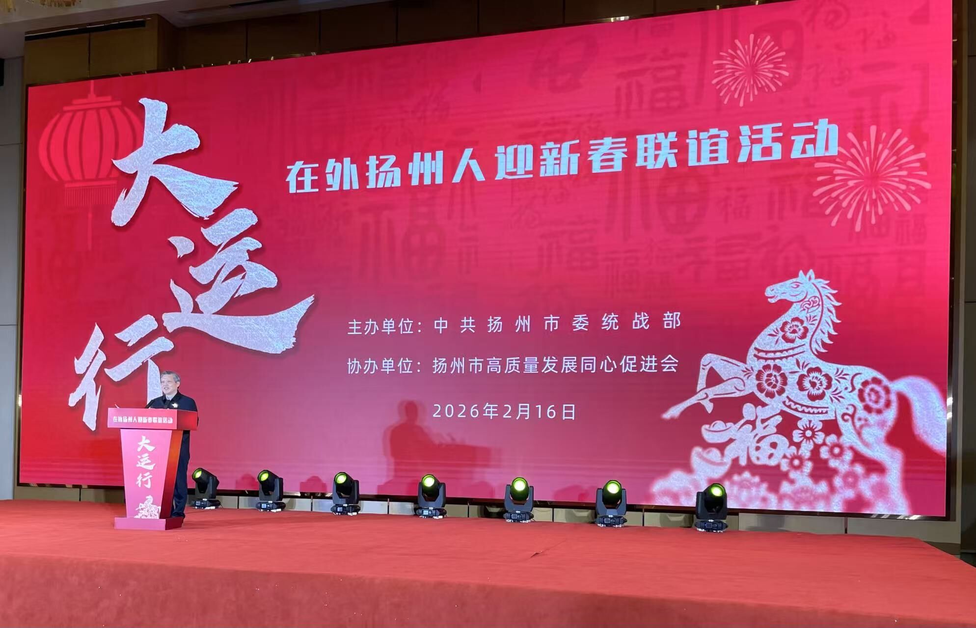 为进一步凝聚在外扬州人桑梓情怀,汇聚乡亲智慧力量助力家乡现代化建设,2月16日(除夕),扬州市委统战部举办“大运行”在外扬州人迎新春联谊活动。来自全国各地的在外扬州人代表齐聚一堂,共赏家乡新貌、共叙浓浓乡情、共商发展大计。扬州市人大常委会主任、党组书记孔令俊出席活动并致辞,市委统战部常务副部长吉琳主持活动,市文广旅局、市国资委、市工商联及各县(市、区)、功能区统战工作相关负责人参加活动。