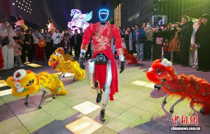 还有一群身穿定制节庆服装,“文”能手写春联,“武”能挥手拜年、跳舞互动的人形机器人,也悄然成为城市的“新春巡游顶流”,穿梭于当地红山动物园、熙南里等文旅景区、地标项目,以互动巡游和点位舞蹈的形式,为游客带来一场充满未来感的科技年味。