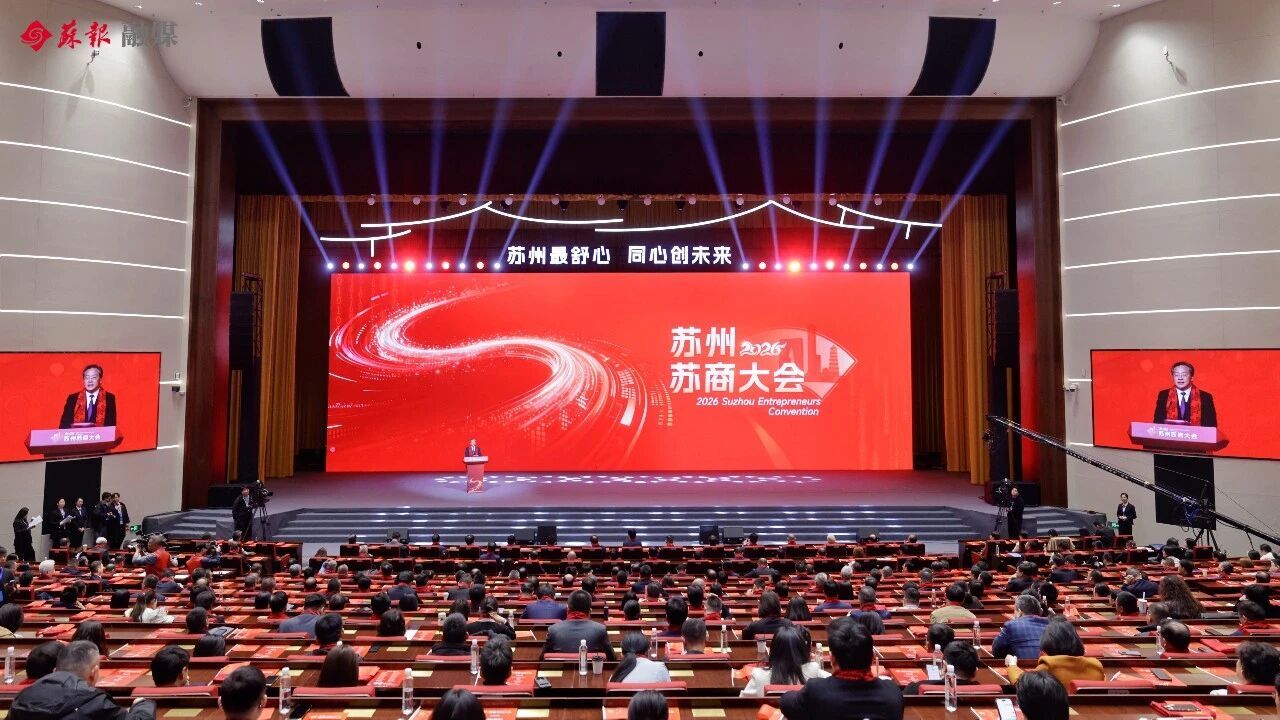 会上,播放了主题片《苏商·苏Shine》,发布了《苏州市重点新兴产业和重点未来产业名单》《苏州市构建一流营商环境行动方案(2026年)》。24位企业家代表上台发布《苏商之光,点亮苏州》倡议书,发出了“胸怀报国志、一心谋发展、守法善经营、先富促共富”的倡议。