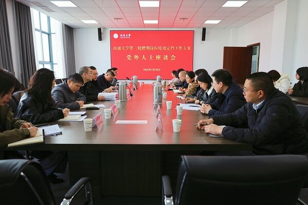 3月20日,南通大学召开党外人士座谈会,就《南通大学第三轮聘期岗位绩效定档工作方案(第三次征求意见稿)》听取各民主党派成员和无党派人士代表的意见建议。学校党委常委、副校长华亮出席座谈会。