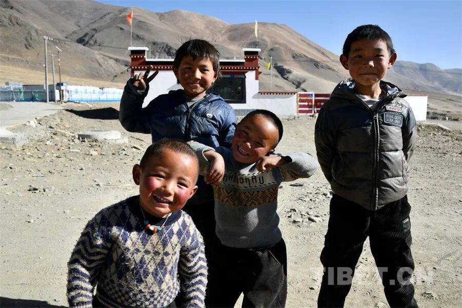 2026年1月,日喀则市定日县长所乡古荣村的受灾儿童在新居前笑容灿烂 摄影:赵振宇