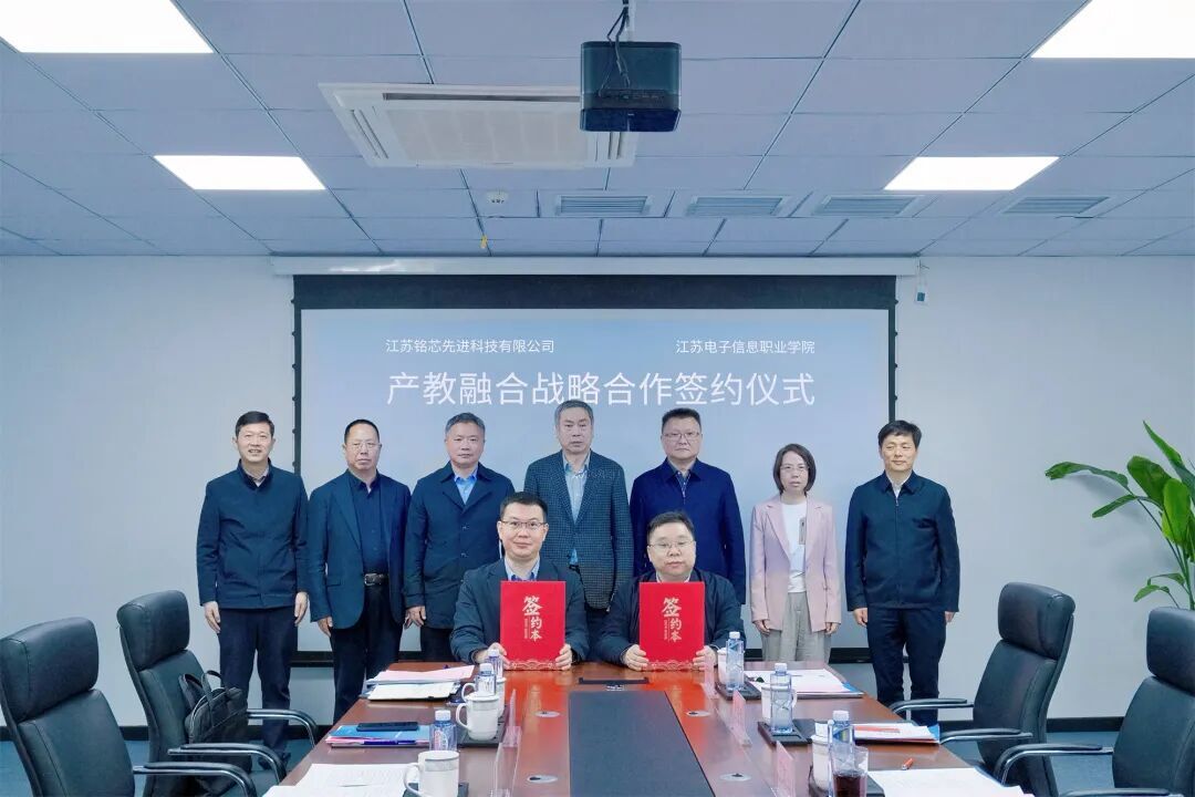 3月30日,江苏电子信息职业学院与江苏铭芯先进科技有限公司在淮安举行校企合作签约仪式。中华职业教育社有关负责同志见证签约。