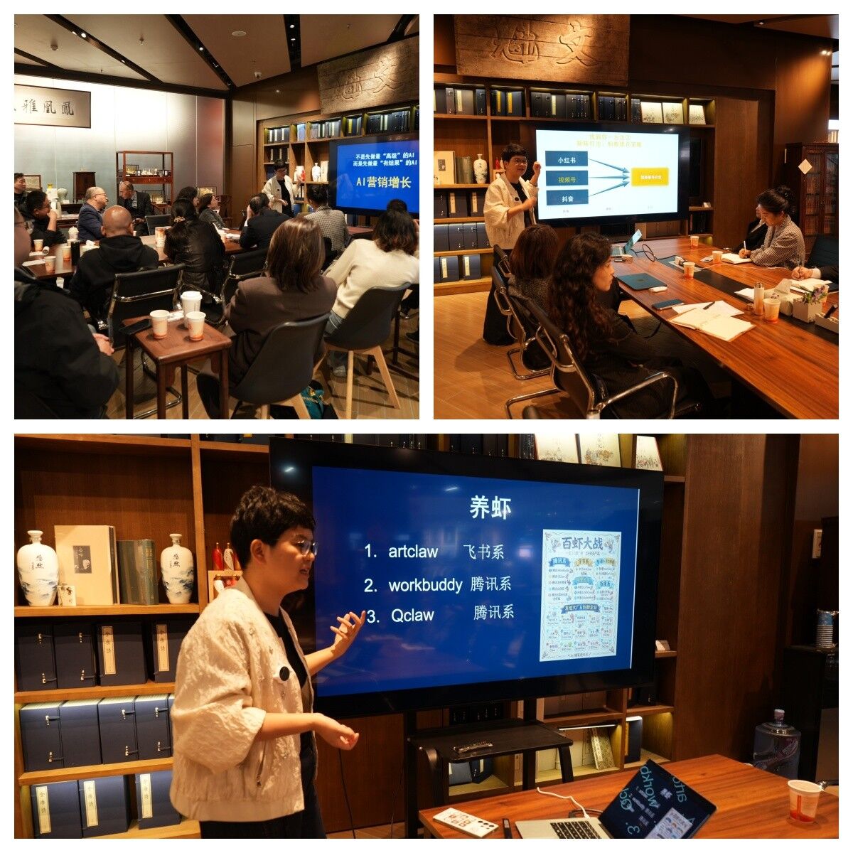 活动特邀工信部认证高级生成式AI应用师陈亚勤、超级个体AI架构师赵和琳两位行业专家,带来兼具专业性与实操性的深度授课。陈亚勤老师围绕“AI效率系统”主题,现场演示了借助AI快速完成PPT制作、海报设计、营销文案生成的全流程操作,手把手讲解实操技巧;赵和琳老师聚焦“AI营销内容生产”板块,展示了AI技术批量产出优质短视频、图文宣传素材的核心能力,为企业破解内容产能不足、创作效率偏低等实际难题,提供了可直接落地的解决方案,干货满满的分享获得了参会人员的一致认可。