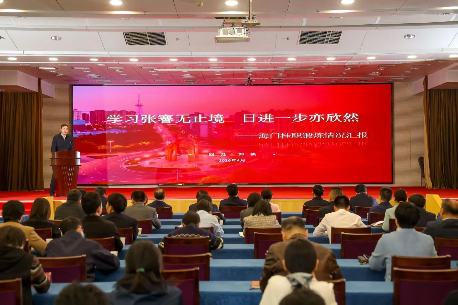 非公有制经济工作处副处长郑祺以“学习张謇无止境,日进一步亦欣然”为主题,讲述了在挂职担任南通海门区政府党组成员、科技镇长团团长期间,针对地方需求,开展人才引荐、项目对接、合作交流等工作时的难忘故事,诠释了统战干部在经济发展主战场攻坚克难、冲锋陷阵的使命担当。