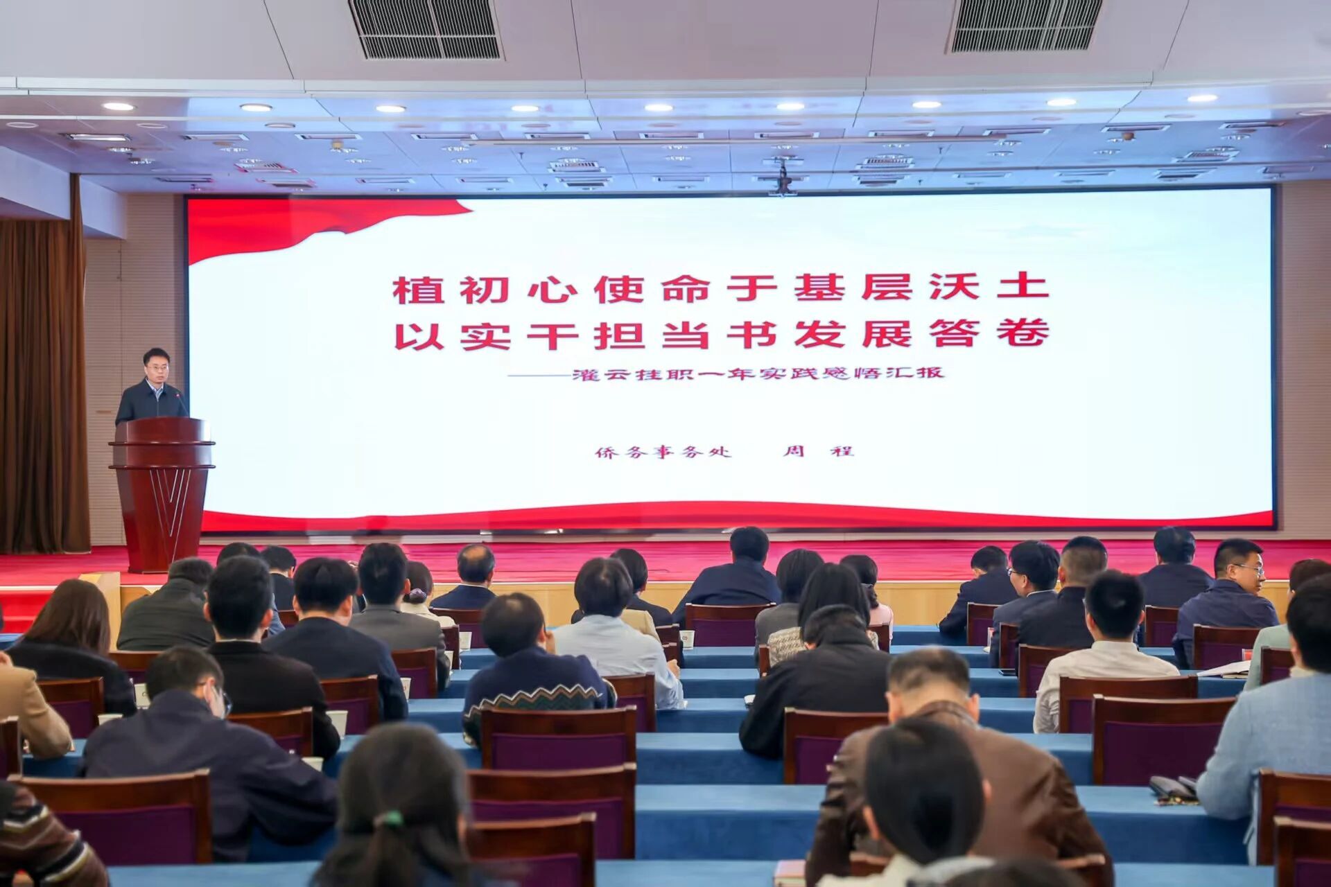侨务事务处副处长周程以“植初心使命于基层沃土 以实干担当书发展答卷”为主题,分享了在挂职担任连云港灌云县副县长期间,深耕统战工作、推动地方经济发展、加强对外合作交流的宝贵经历,展现了统战干部融入地方发展大局,深入践行党的群众路线的生动实践。