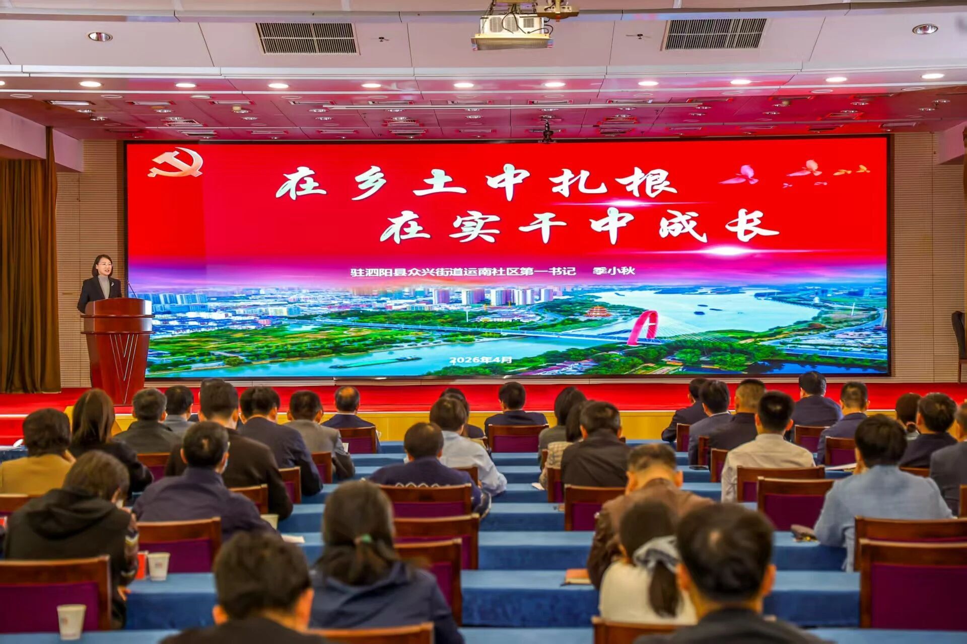 离退休干部处副处长季小秋以“在乡土中扎根,在实干中成长”为主题,分享了在挂职担任宿迁泗阳县农业农村局党委委员、副局长、驻运南社区第一书记期间,扎根基层、融入群众,带领群众致富、改善村居环境、推动乡村振兴的生动故事,话语间饱含着对基层的热爱、对群众的深情。