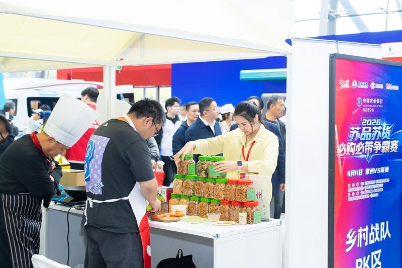 4月11日,万众期待的2026年“苏超”联赛在常州奥体中心体育场燃情揭幕。绿茵场上,球员们驰骋拼搏,热血激荡;赛场之外,一场别具风味的“苏品苏货·必购必带争霸赛”同样精彩上演——来自江苏各地的乡土好物齐聚一堂,展开了一场别开生面的“舌尖对决”。16支由村书记带队的“乡村战队”同台竞技,通过线上线下联动,推介各自乡村好物。