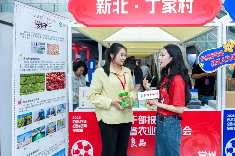 省委统战部办公室四级主任科员、常州市新北区薛家镇丁家村党总支副书记孙琳,带领丁家村委,代表常州市新北区参加本次“苏品苏货·必购必带争霸赛”,推介丁家村特色农产品吕墅萝卜干,并接受新华日报、乡村干部报等媒体采访。采访中,孙琳详细介绍了吕墅萝卜干的制作工艺与产品特色,讲述了丁家村从过去无资产、无资源、无特色的“三无村”,发展成为如今远近闻名的网红“萝卜村”的蝶变历程,以及自己作为选调生驻村工作期间的收获与感悟。