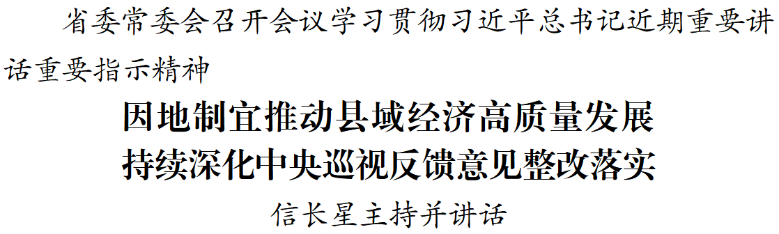 4月27日,省委常委会召开会议,学习贯彻习近平总书记近期重要讲话重要指示精神,进一步部署推进中央巡视反馈意见整改落实、树立和践行正确政绩观学习教育等工作。省委书记信长星主持会议并讲话。